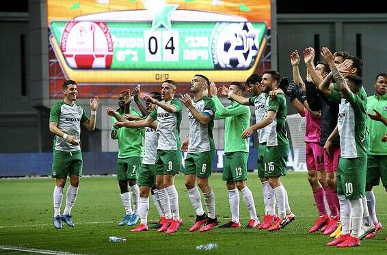 שחקני מכבי חיפה חוגגים את ה-0:4 הגדול על ב"ש // צילום: אלן שיבר