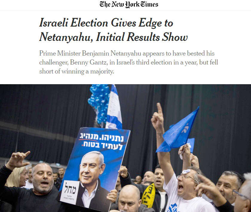 ובכל זאת, היו כמה עיתונים שכן בחרו להדגיש את הנושא. ב"וושינגטון פוסט" דיווחו בשער על "קאמבק של נתניהו, שלא השיג רוב מוחלט". בעיתון הוסיפו כי ראש הממשלה "נמצא בעמדה טובה יותר להקמת ממשלה".