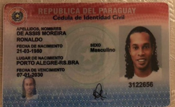 על פי דיווחים בדרום אמריקה, שחקן העבר הברזילאי רונאלדיניו נעצר בפרגוואי בגין שימוש בדרכון מזויף בכניסה למדינה. שר הפנים המקומי אישר שאגדת הכדורגל בן ה-39 שביקר בישראל לפני כמה חודשים נעצר יחד עם אחיו. בתקשורת המקומית מדווחים שרונאלדיניו ואחיו נכנסו למדינה עם דרכונים פרגוואיים מזוייפים.