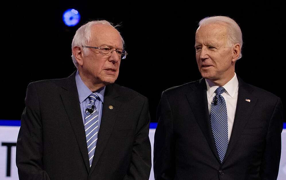 ביידן וסנדרס במהלך העימות הדמוקרטי בנבדה // צילום: איי.אף.פי // ביידן וסנדרס במהלך העימות הדמוקרטי בנבדה // צילום: איי.אף.פי