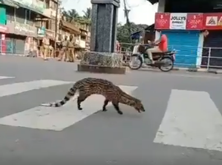 בסרטון שצולם במדינת קרלה בעיר קוז'יקוד, יומיים אחרי תחילת העוצר, נראה באמצע היום זבד הודי מלברי חוצה רחוב ריק ומשחר לטרף.