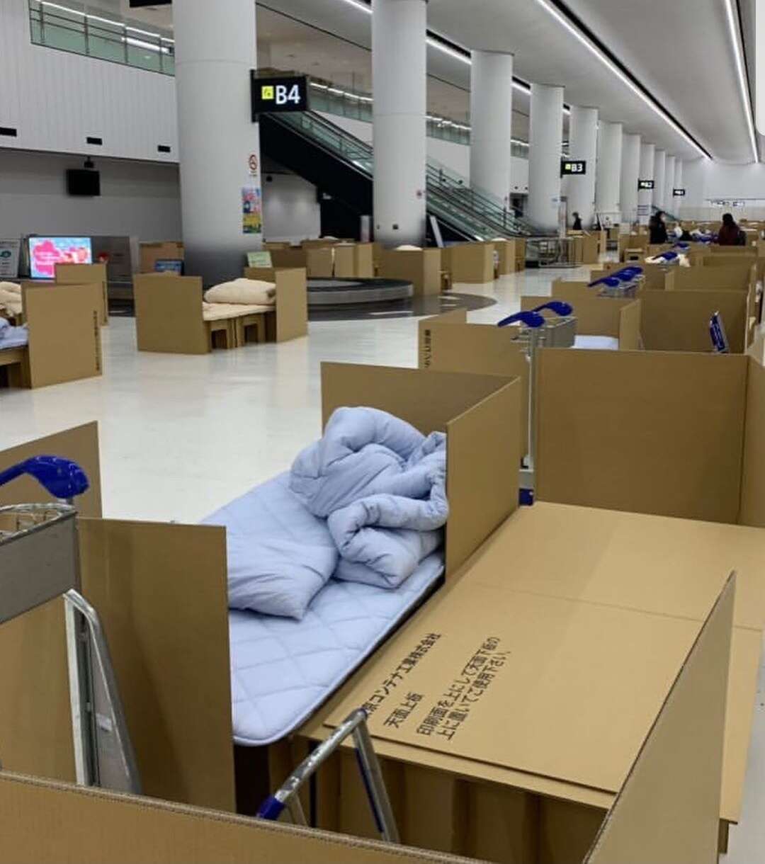 ביפן, החליטו למצוא דרך מקורית מאוד להתמודד עם הכנסת הנגיף למדינה - מיטות קרטון שמגיעות בקופסאות קטנות וממתינות לנוחתים בנמל התעופה נאריטה שבטוקיו. לפי הדיווחים, כל הנכנסים למדינה עוברים בדיקת קורונה וממתינים לתשובות, בזמן ההמתנה כל אחד מהנוסעים מקבל מיטה נפתחת מקרטון, בה הוא יכול לישון בזמן שהוא מחכה לאישור שהוא בריא ויכול להיכנס למדינה. גם מי שמקבל תוצאות שליליות (אינו נושא את הנגיף), צריך להיכנס לבידוד במשך שבועיים.