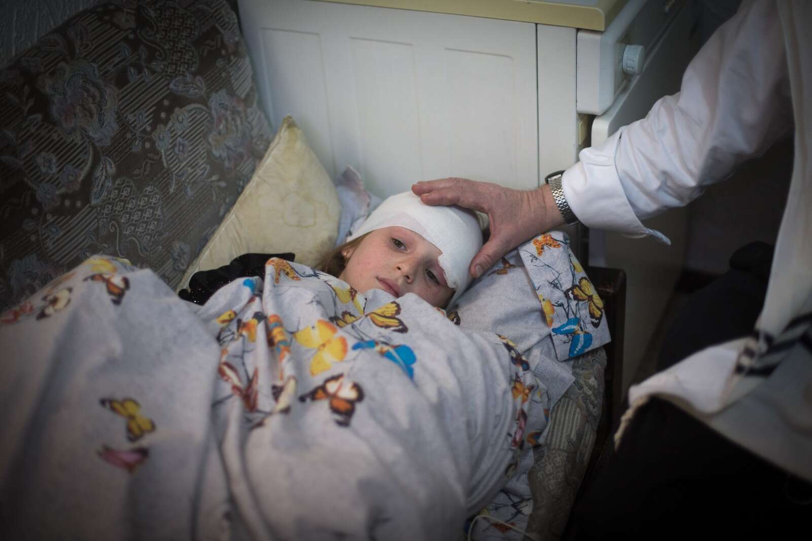 תחבושת גדולה מעטרת את ראשה של זיסי מרגליות בת ה-9, הילדה שנפצעה אתמול (חמישי) מרימון הלם שהושלך לעברה בשכונת מאה שערים בירושלים. זיסי, שנפצעה סמוך לעין שלה, לא פונתה לבית חולים בגלל החשש של הוריה ממגפת קורונה וטופלה בשכונת מאה שערים, שבה היא מתגוררת ושם היא מנסה להתאושש מהטראומה שחוותה.