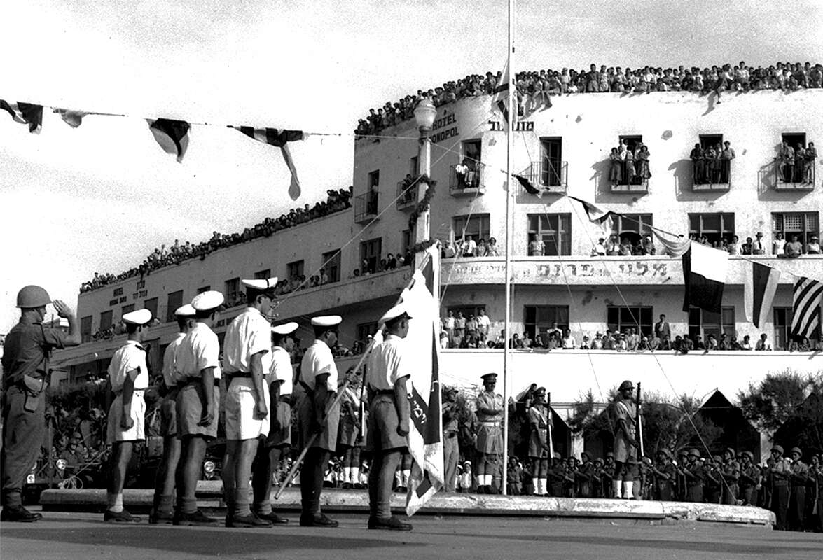ב־23 באפריל 1950, במסגרת אירועי יום העצמאות השני למדינה, נערך לראשונה בירושלים מצעד צבאי. לישראל היה חשוב לקיים את המצעד בבירה, כסימן לריבונותה בעיר, למרות הסכם שביתת הנשק עם ירדן - שאסר הכנסת נשק כבד לירושלים. בשל מגבלה זו כלל המצעד רק ג'יפים נושאי מקלעים ותותחים קלים מתניידים, לצד שורות של החיילים והחיילות. המוני צופים הריעו לצועדים לאורך המסלול ברחוב המלך ג'ורג'.