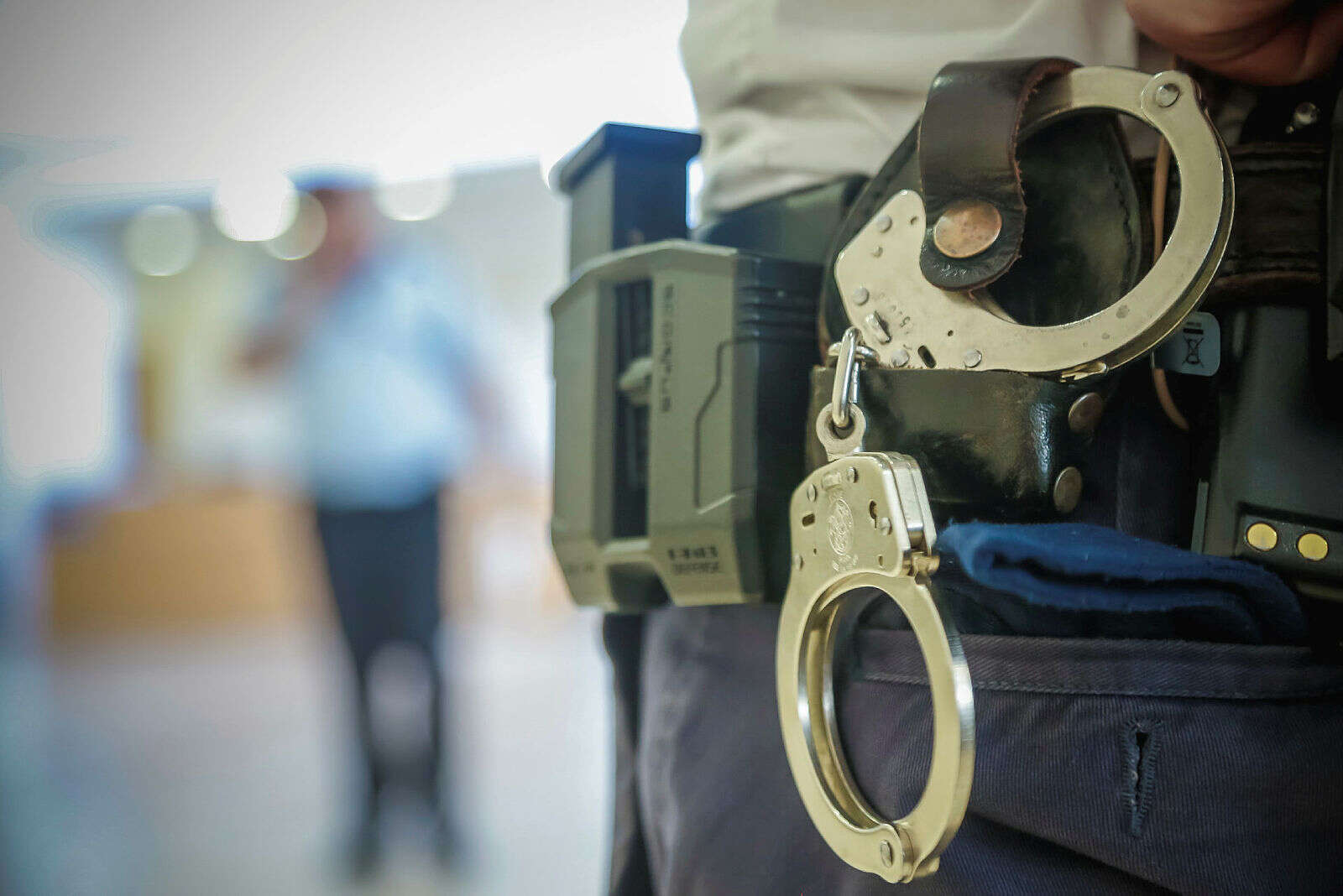 לאחר מכן, אותו שוטר הוביל את הנאשם לכניסה לסניף, ביקש ממנו להזדהות ולרוקן את כיסיו ואז, לטענת השוטר, הצעיר זרק דבר מה לנגד עיניו לכיוון הגדר המערבית. השוטר ביקש מהמאבטח במקום לשמור על הנאשם, ביצע חיפוש ומצא סכין יפנית על החלק העליון של הגדר.