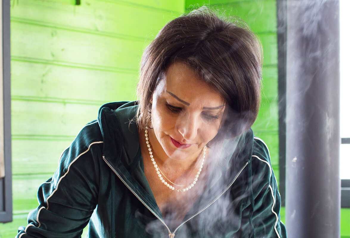 בימים נטולי קורונה, בית הבזלת קטן מלהכיל את גודל הקבוצות המגיעות לנסיבה. הילדים כבר גדלו, אז היא סגרה את המרפסת הקדמית של הבית ושם היא מארחת. כשביקרתי שם, סיימה בדיוק לארח 36 שפים מארה"ב ובישלה ארוחה לקבוצה של 60 איש מחברת הייטק מהמרכז. סיפרה שלמחרת תטוס לקונטיקט, יחד עם הבן שלה, לסדרת הרצאות וארוחות לרגל יום האישה הבינלאומי.