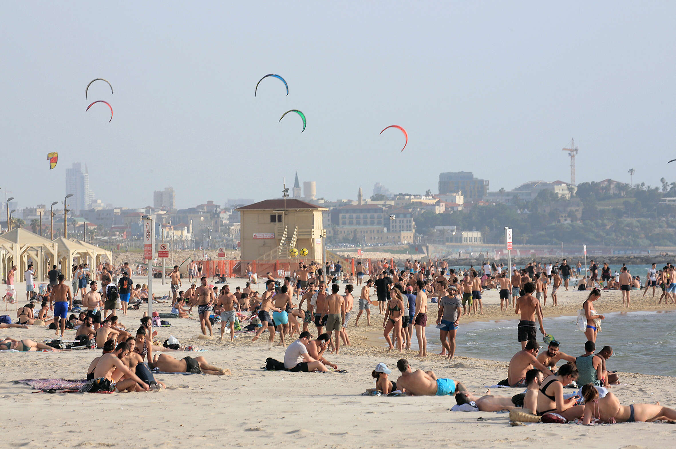 מאות ישראלים מבלים את השרב בחוף הים // צילום: פז בר