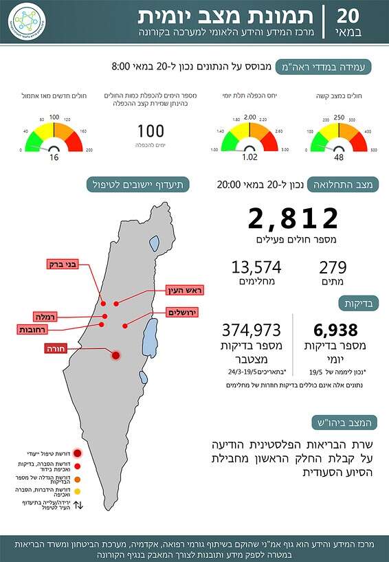 בתוך כך הבוקר פרסם משרד הבריאות את נתוני הערים האדומות ברחבי המדינה הכולל את בני ברק, ראש העין, רמלה, ירושלים, חורה ורחובות כאמור.