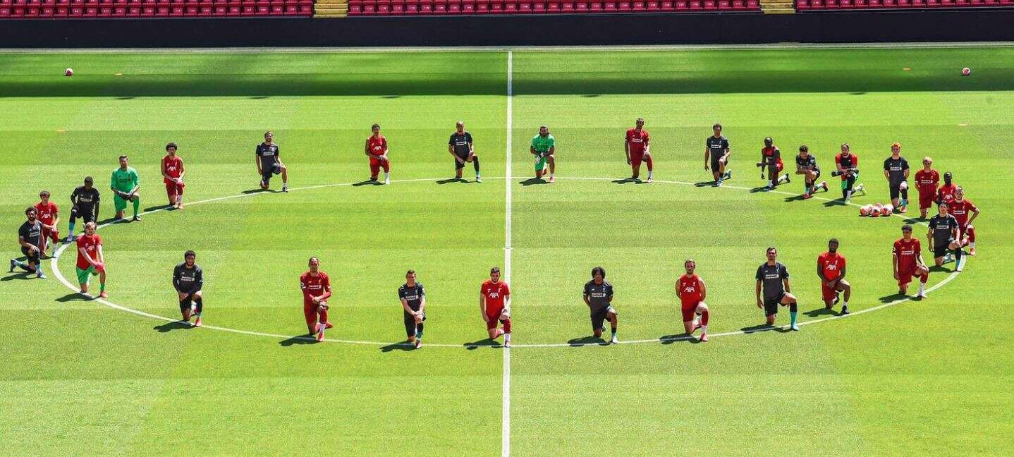 הכריעה של שחקני ליברפול דומה למחווה שעשה הקוורטרבק לשעבר ב-NFL, קולין קאפרניק שבשנת 2016 כרע ברך במהלך המנון ארה"ב במחאה על אכזריות המשטרה. אתמול (ראשון) במהלך שני משחקים שנערכו בליגה הגרמנית, ג'יידון סאנצ'ו, אשרף חכימי ומרכוס תוראם ביצעו צעד דומה.