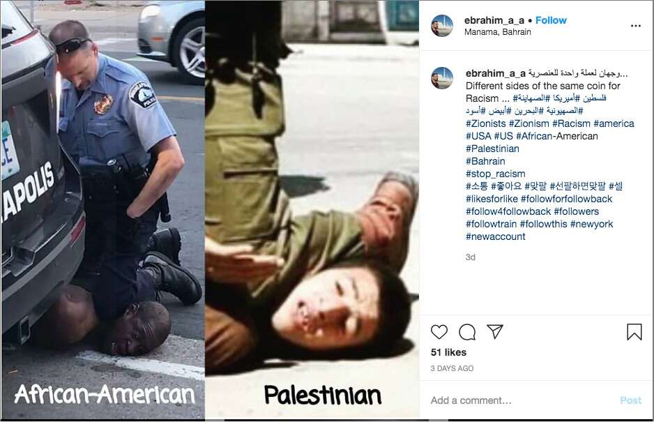 כעת חושפת התנועה למאבק באנטישמיות ברשת כי מאז פרוץ המחאה עלו ברשתות החברתיות עשרות פרסומים אנטישמיים, המשווים את אלימות ה"שוטרים החונקים" לפעילות צה"ל ומדינת ישראל בכלל נגד הפלשתינים. כמו כן, לפי הפרסומים והקריקטורות, האחראים לכאורה למותו של פלויד הם התנועה הציונית, דהיינו מדינת ישראל, שעוררה כביכול את המהומות בארה"ב בכוונת תחילה.