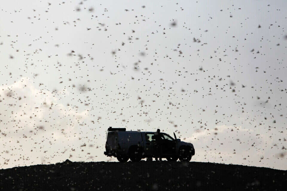 השמים נצבעו שחור כשנחיל של מיליוני פריטי ארבה עבר אתמול את הגבול ממצרים והתמקם בין היישובים קדש ברנע וכמהין. הבוקר משרד החקלאות היה צפוי לרסס את האזור הן מהאוויר והן מהקרקע.