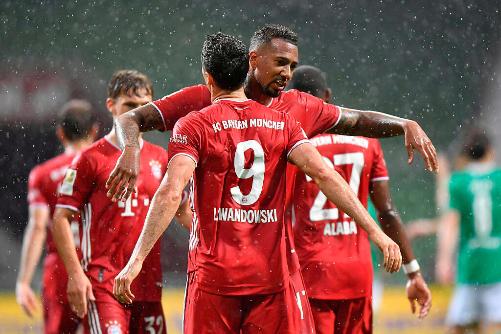 באיירן יצאה למשחק חוץ מול ורדר ברמן לאחר 13 ניצחונות רצופים בידיעה שניצחון נוסף שלה יבטיח את התואר. בדקה ה-44 ג'רום בואטנג שלח מסירה נהדרת לרוברט לבנדובסקי שהשתלט על הכדור ובעט מהאוויר פנימה. הפולני הגיע ל-31 שערי ליגה. 0:1 לפליק וחניכיו בסיום.