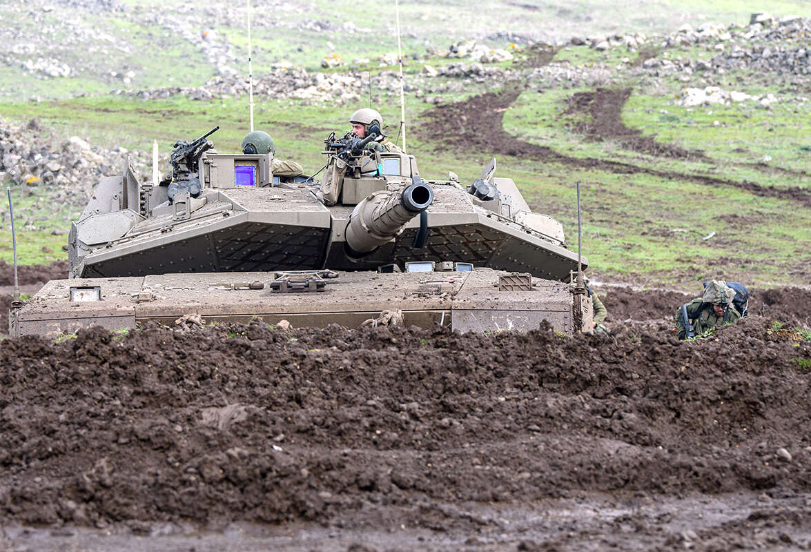 טנק מרכבה של חטיבה 7 בתרגיל ברמת הגולן, בפברואר השנה // צילום: אייל מרגולין/ג'יני // טנק מרכבה של חטיבה 7 בתרגיל ברמת הגולן, בפברואר השנה