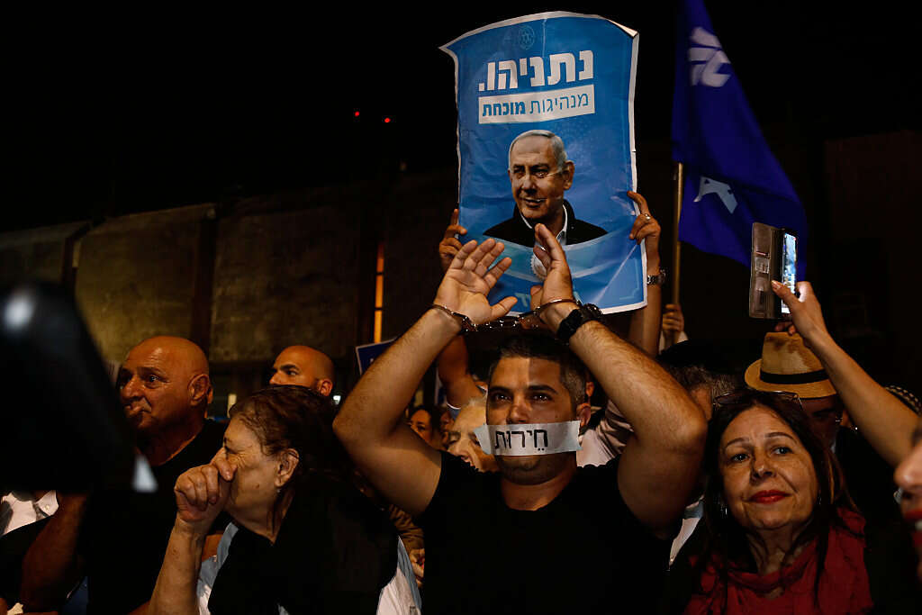 צילום: גדעון מרקוביץ' // תומכי נתניהו ברחבת מוזיאון ת"א