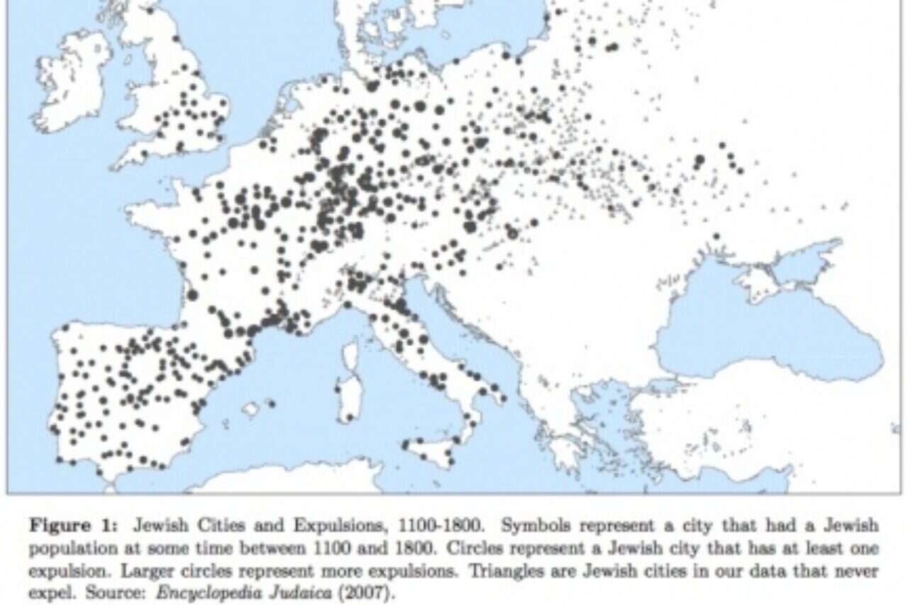 What factors caused the persecution of Jews in medieval and early modern Europe? A new analysis of a data set of 700 years of European Jewish persecutions and expulsions argues that a decrease in temperature which affected a city's crops and resources led to an increase in the likelihood that that city would expel its Jews. Forming the basis for a thought-provoking paper titled "From the Persecuting to the Protective State? Jewish Expulsions and Weather Shocks from 1100 to 1800," a new study explores whether there is a relationship between weather and growing season and the likelihood that the Jewish community would be expelled, and finds that there is. It found that "negative supply shocks" brought on by inclement weather often constituted a trigger that led to expropriations and expulsions in societies that were permeated with anti-Semitism, especially in the areas that now constitute Poland and Germany. "A one standard deviation decrease in temperature is associated with approximately a 1% to 2% increase in the probability of expulsion during any given five-year period. The effect of supply shocks on expulsions is larger in areas with poor soil quality for wheat cultivation and more muted in areas with good quality soil," the researchers concluded. The three researchers Warren Anderson from the University of Michigan-Dearborn, together with Noel D. Johnson and Mark Koyama from George Mason University published their remarkable findings in February in the Social Science Research Network, a resource for sharing and disseminating scholarly research worldwide. Viewed through this lens, the results suggest that temperature shocks put pressure on rulers to expel Jews both as a means to expropriate their property and thereby make up lost tax revenue as well as to quell popular violence. Using data on Jewish populations, expulsions and other episodes of organized violence from the 26-volume Encyclopedia Judaica (2007), the researchers built a model that predicts that minority communities were more likely to be expropriated in the wake of negative income shocks. They used panel data consisting of 785 city-level expulsions of Jews from 933 European cities between 1100 and 1800 to test the implications of the model. The researchers used the variation in city-level temperature to test whether expulsions were associated with colder growing seasons. "We find that a one standard deviation decrease in average growing season temperature in the fifteenth and sixteenth centuries was associated with a one to two percentage point increase in the likelihood that a Jewish community would be expelled. Drawing on our model and on additional historical evidence we argue that the rise of state capacity was one reason why this relationship between negative income shocks and expulsions weakened after 1600." Using data on climatic variation, they identified the effect that negative economic shocks had on minority rights in the preindustrial period and show that the relationship between climatic shocks and the expulsion or persecution of Jewish communities was strongest in the fifteenth and sixteenth centuries and disappeared after 1600, when there was no longer a discernible effect of weather on expulsions. The researchers present evidence that indicates that the rise of more powerful states was an important factor in explaining why weather shocks ceased to be associated with expulsions after 1600. "Medieval states were weak. They were vulnerable to economic shocks and popular unrest, and though they depended on minority groups like the Jews for financial expertise and as a source of revenue, they were willing to sacrifice the rights of those very same minority groups in order to sate popular anger and to meet pressing financial exigencies," the paper states. "The early modern nation states that emerged after 1600, in contrast, succeeded in building fiscal and legal capacity; they were no longer dependent on taxing economically prosperous minorities, and more importantly still, they enjoyed greater political stability and ceased to be responsive to popular unrest and anti-Semitism." The team focused on the persecution of the Jews in medieval and early modern Europe, one of the most numerous and best documented minorities throughout European history. "Violence against Jews was caused by many factors, but we build on the common claim advanced by historians that Jews were convenient scapegoats for social and economic ills," the researchers said. Jews in medieval Europe comprised a market dominant minority. While Jewish communities have existed in southern Europe since Roman times, permanent Jewish communities only appeared in northern Europe in the ninth and tenth centuries. They came for economic purposes as traders and as merchants. Rulers encouraged Jewish settlement in order to encourage commerce, investment, and economic development. By 1100 there were a large number of Jewish settlements scattered across England, France and Germany in addition to the large Jewish population in Spain. The team's conclusions: Negative economic shocks led to popular unrest and this unrest resulted in the scapegoating of minority groups, i.e., persecution from below. Negative economic shocks also put greater pressure on royal finances and led rulers to expropriate and expel the minority groups, i.e., persecution from above. Both of these channels suggest that the effect of negative weather shocks on expulsions should have been greatest in regions with poor quality soil and, therefore, a greater underlying vulnerability to agricultural shocks. "It is important not to overstate the frequency with which Jewish communities were threatened with violence and pogroms many Jewish communities lived in peace with their Christian neighbors for long periods of time. But as an economically dominant minority in poor and largely agrarian economies, and as outsiders in a society that increasingly aggressively defined itself in opposition to infide