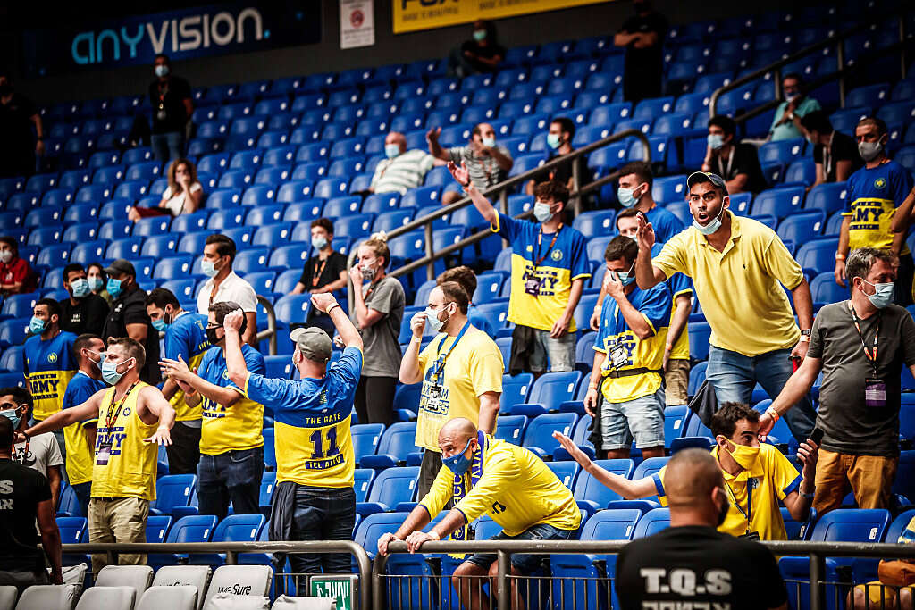 עד כה בכל המשחקים לא נכח קהל וכעת נכנסה חבורת אוהדים לאולם כדי לדחוף את קבוצתם במשחק המכריע על העלייה לפיינל פור. יש לציין כי גם ביציע אנשי הפועל תל אביב ישנם לא מעט אנשים שככל הנראה אינם חברי הנהלת המועדון ולפי ההנחיות לא אמורים להיות נוכחים באולם.