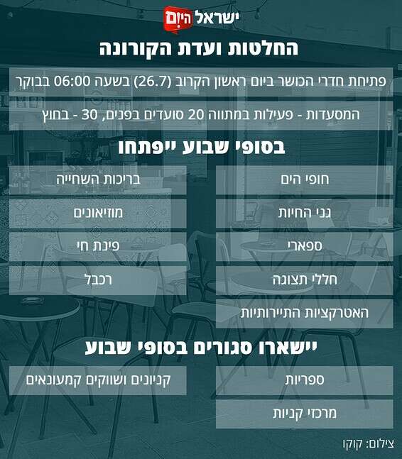 בעקבות התפשטות הנגיף, נכנסו הערב הגבלות חדשות על התקהלויות. בעקבות ההנחיות, קניונים ומרכזי הקניות בארץ נסגרו בשעה 17:00, אך חופי הים, ואתרי תיירות כמו מוזיאונים וגני החיות נותרו פתוחים.