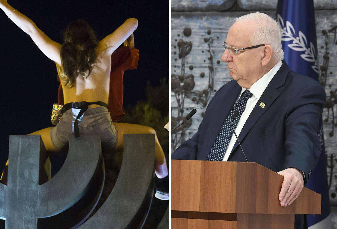 כזכור, האירוע אליו ככל הנראה התייחס הנשיא התרחש ביום שלישי בשבוע שעבר, כשבעת הפגנה מול הכנסת, בוזה סמל מדינת ישראל, המנורה בת שבעת הקנים, שמוצבת מול הכניסה למשכן, בעת שמפגינים אנרכיסיטים, שהיו חלק מהפגנת השמאל נגד רה"מ נתניהו, עלו על סמל המדינה וביזו אותו תוך הנפת דגלים אדומים של ארגון "אנטיפה". כאמור, הגדילה לעשות אחת המפגינות ועלתה חשופת חזה על סמל המדינה, תוך שהיא מניפה דגל אדום.