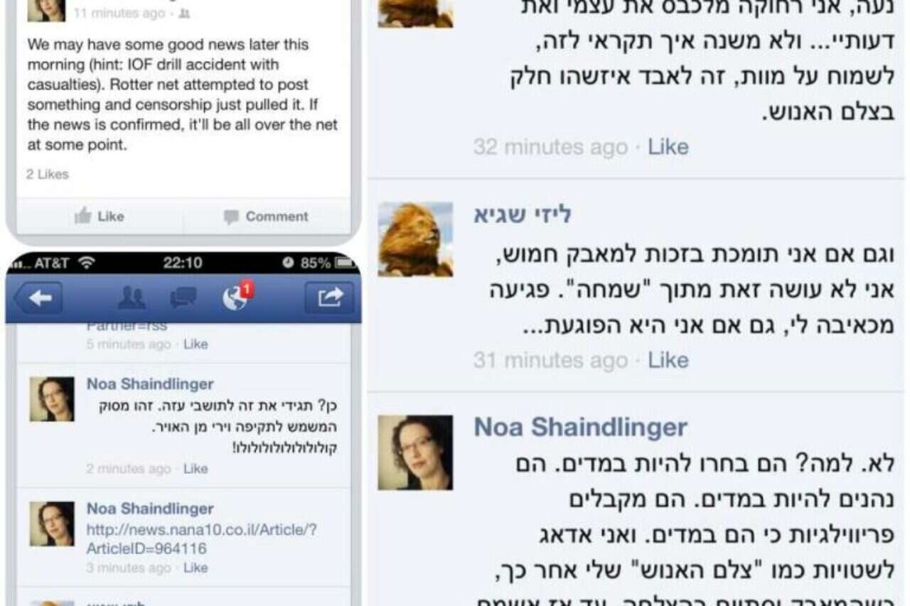 לאחר מכן כתבה: "זהו מסוק המשמש לתקיפה וירי מן האוויר. קולולולולו! הם בחרו להיות במדים. הם מקבלים פריבילגיות כי הם במדים. ואני אדאג לשטויות כמו 'צלם האנוש' שלי אחר כך, כשהמאבק יסתיים בהצלחה. עד אז אשמח גם אשמח בנפול אויביי".