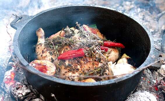 7. סוגרים את הסיר במכסה, מניחים בצד המדורה - היכן שהגחלים לוחשות, לא במרכז המדורה היכן שהלהבות חזקות.