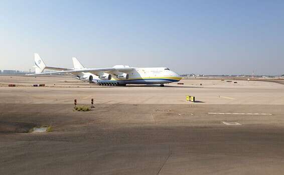 בנתב"ג נחת לפני זמן קצר המטוס הכבד ביותר שנבנה אי פעם, אנטונוב 225 שיוצר בשנות השמונים בברית המועצות. משקלו של מטוס הענק: 285 טונות.