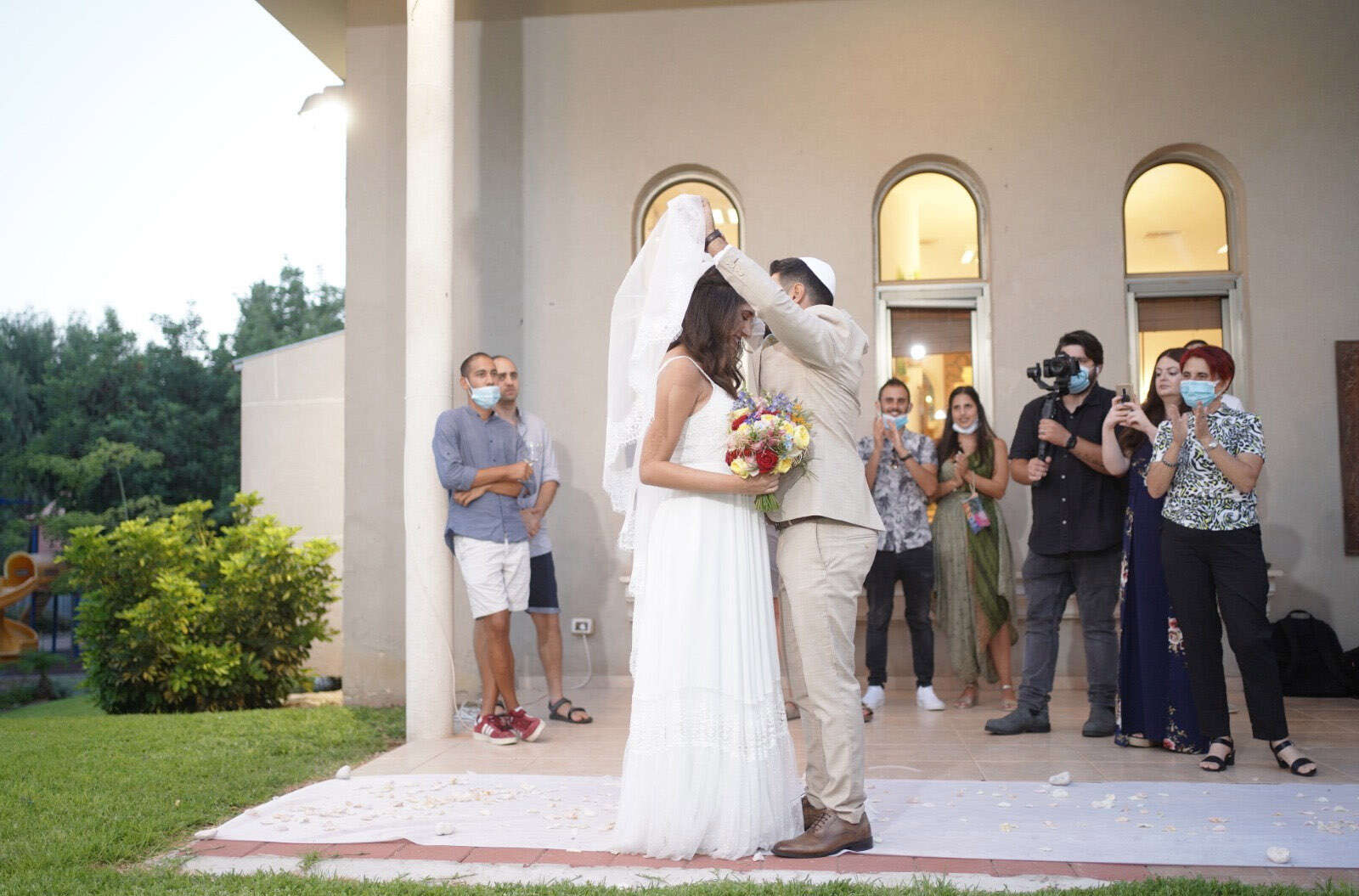 "מצאנו את עצמנו נאלצים לצמצם חלק גדול מהאורחים ל־250 איש", מספרים בני הזוג, תושבי תלמי אלעזר, שהתחתנו ב־8 ביולי, "זו דילמה לא נעימה: על מי לוותר ואת מי להשאיר. לאחר שהתמודדנו עם הקיזוז ועברנו אותו, סגרנו אולם וספקים, וחיכינו בקוצר רוח לאירוע. באותם הימים מספר החולים היומי היה נמוך מאוד ולא חשבנו על גל שני והשלכותיו. זמן לא רב לאחר מכן, קיבלנו פרופורציות והבנו שדילמת קיצוץ האורחים היא כלום לעומת מה שמצפה לנו בהמשך, לאחר שמספר החולים החל לעלות בצורה מסחררת. שישה ימים לפני האירוע שלנו נכחנו בחתונה שבה חגגו 250 אורחים, ותוך כדי שהיינו בה הודיעו שמספר הנוכחים המותר יורד ל־50.