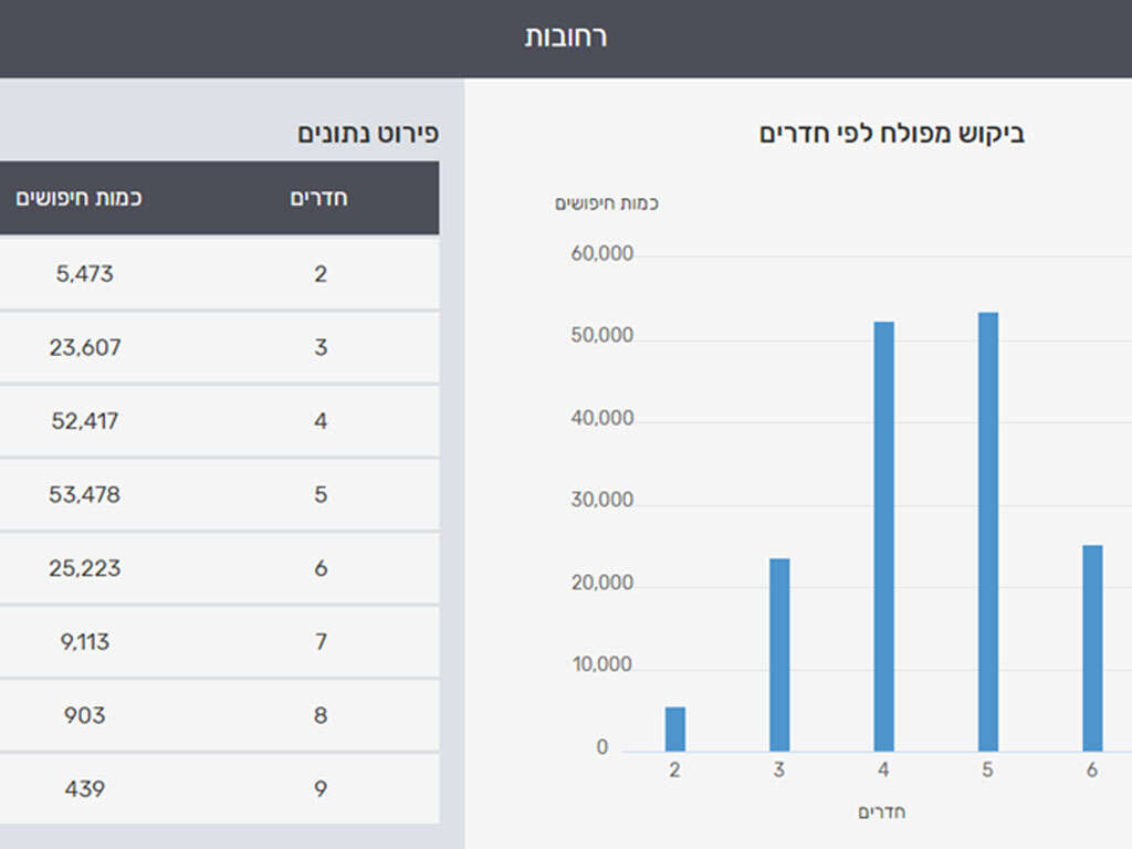 התפלגות החיפושים בשנה האחרונה על פי מספר החדרים:
