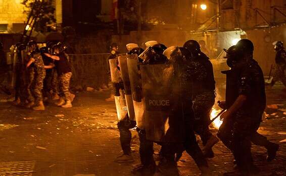 עימותים בין מפגינים לשוטרים בביירות על רקע אסון הפיצוץ // צילום: רויטרס