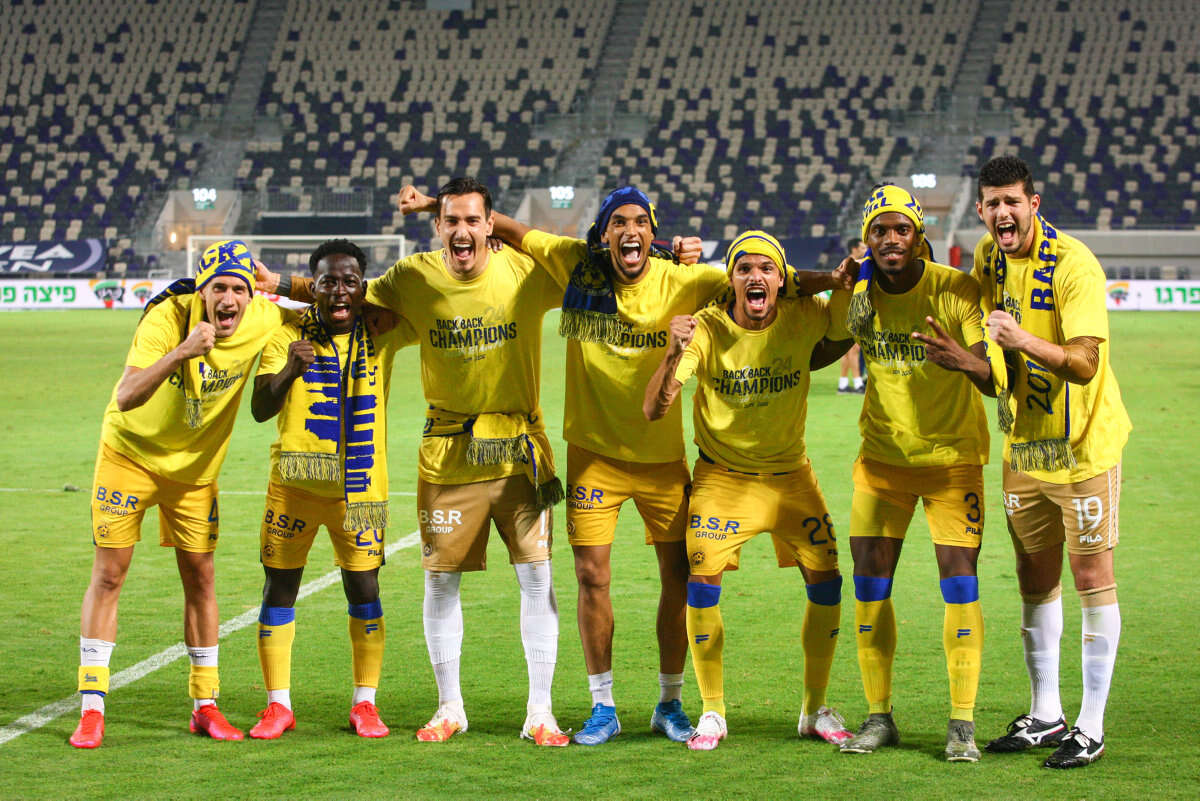 שחקני מכבי ת"א חוגגים. מי תהיה המשוכה הראשונה? // צילום: עמי שומן