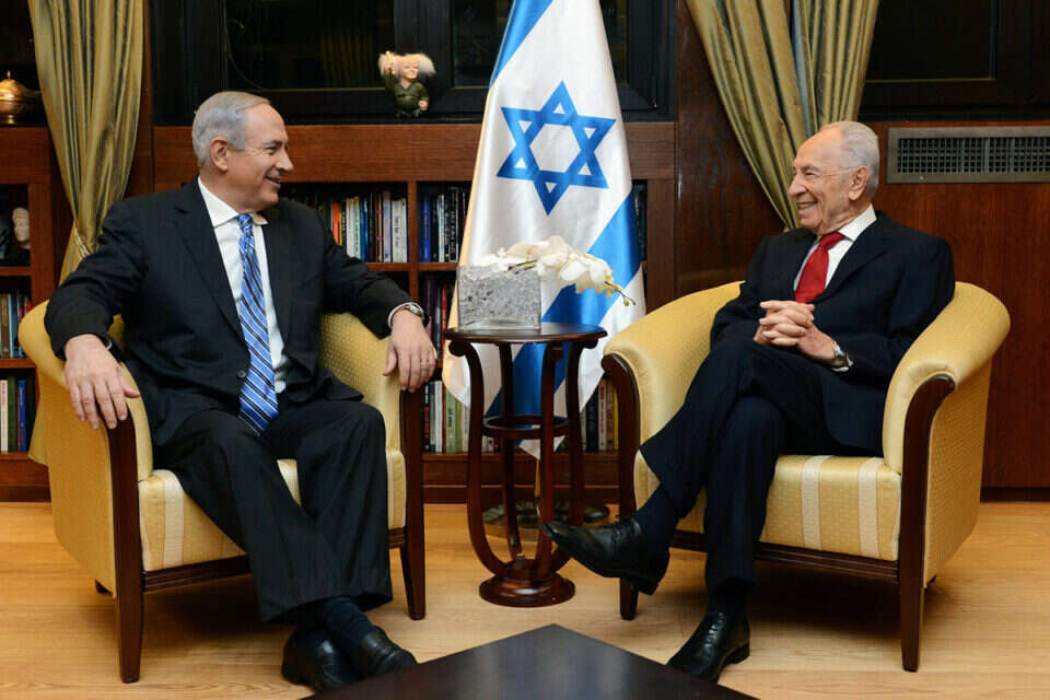 צילום: קובי גדעון / לע"מ // פרס ונתניהו, אמש. "עומדים בפני שנה מכרעת"