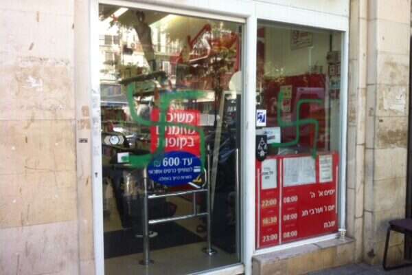 צילום: רוני שיצר // צלבי קרס על חלונות חנות ביפו