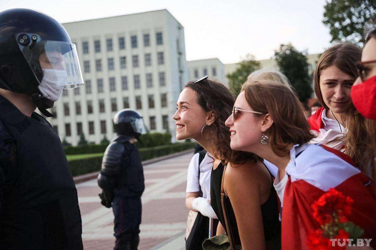 נדיה (20), תושבת מינסק וסטודנטית במכון הבינלאומי לאקולוגיה ליד האוניברסיטה הממלכתית של בלארוס, מספרת שהשוטר הסיר את המסכה בזמן השיחה. "זה חשוב, כי בזמן השיחה, כאשר נשים אחרות שאלו אותו למה הוא מסתתר, הוא אמר שהוא בסך הכל מפחד מהקורונה. ראינו את הפנים שלו. בחור צעיר מאוד".