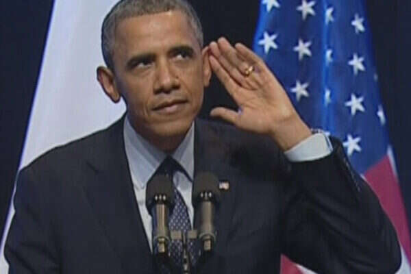 נאומו של ברק אובאמה הופרע, מה שגרר קריאות בוז מהקהל • הנשיא הגיב בקלילות: "אני מרגיש בבית" - וזכה לתשואות