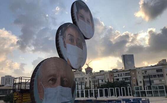 עיריית תל אביב-יפו עיטרה הלילה (חמישי) את פסל "התרוממות" בכיכר התרבות בדמויות עם מסכות, זאת כחלק ממאמצי ההסברה על חשיבות עטיית מסכות במרחב הציבורי.