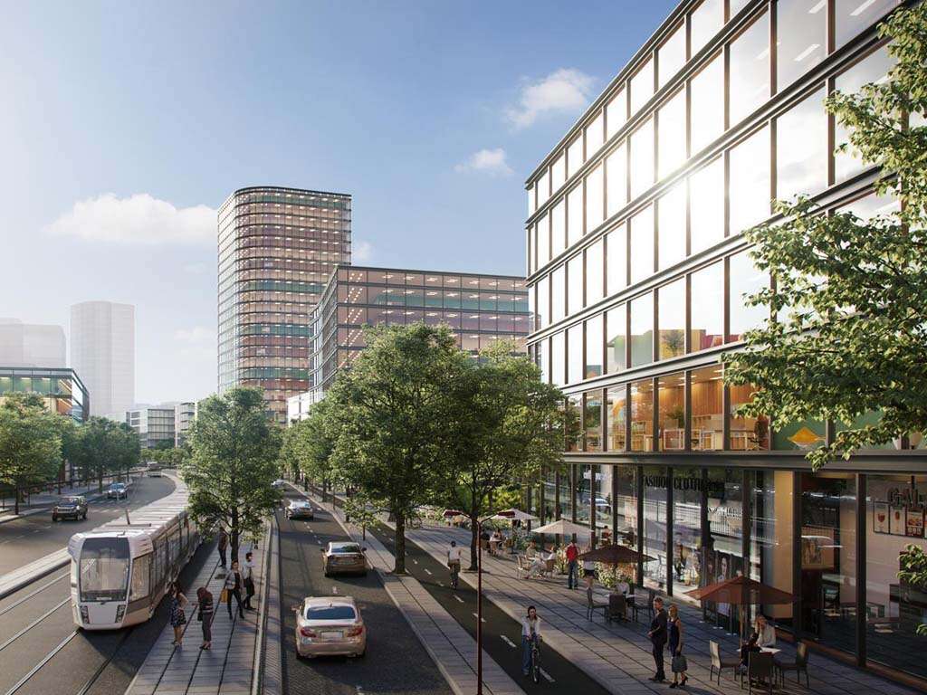 הרובע החדש כולל נגישות תחבורתית מרשימה: חיבור של כביש 200 החדש למחלף נתב"ג בכביש 1 ולכביש 40, הוספת תחנת רכבת, תחנות מטרו לקו M1, הקו החום של הרכבת הקלה, נתיבי תחבורה ציבורית שיחברו בין תחנות הרכבת של העיר לחניון שפירים דרך הרובע ורשת שבילי אופניים והליכה.