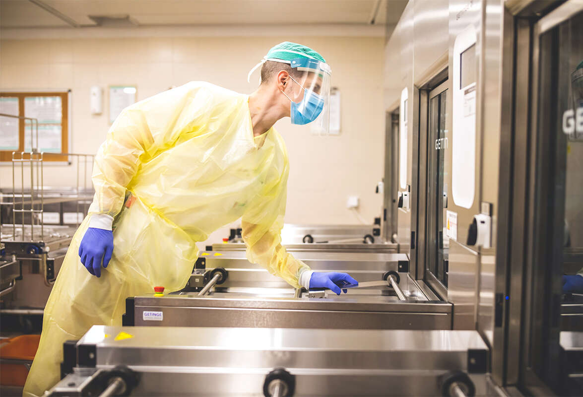 ינאי פינקלשטיין ממחלקת אספקה סטרילית, מבצע תהליך סטריליזציה למכשור רפואי // צילום: מיכה בריקמן // ינאי פינקלשטיין ממחלקת אספקה סטרילית, מבצע תהליך סטריליזציה למכשור רפואי