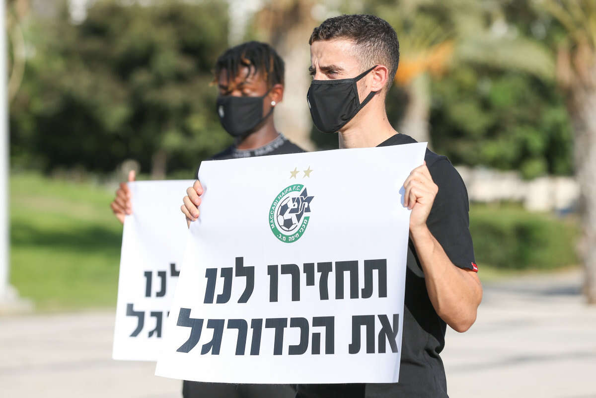 המועדונים הגדולים של הכדורגל הישראלי מעבירים הילוך במאבק על החזרת האימונים והמשחקים. שחקני מכבי חיפה הגיעו היום (שלישי) להפגין מחוץ לאצטדיון סמי עופר עם שלטים שעליהם הכיתוב: "תחזירו לנו את הכדורגל" ו"הכדורגל זה החמצן שלנו".