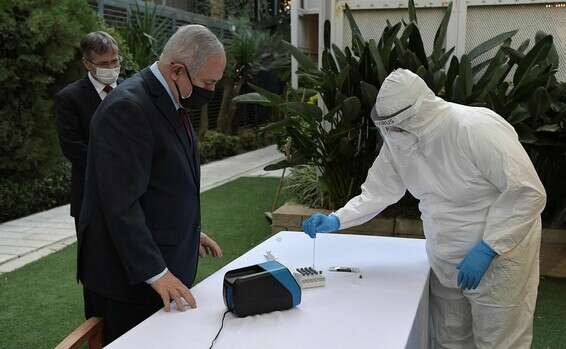 ראש הממשלה בנימין נתניהו יצא שלילי לקורונה בבדיקת מהירה מסוג "סופיה", שתוצאותיה מתקבלות לאחר 15 דקות - כך מסרה הערב (שלישי) לשכתו של נתניהו.