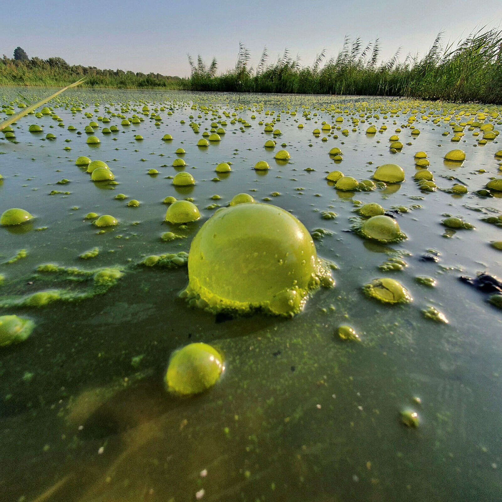 שעת בוקר מוקדמת, ורק ההתפוצצות של עשרות בועות ירוקות העולות על פני המים - מפריעה לשקט באזור מושב שדה יעקב. המראה החריג נובע מגזים העולים מתחתית המאגר שנמצא במושב, כשני קילומטרים דרום-מזרחית לקריית טבעון בעמק יזרעאל.