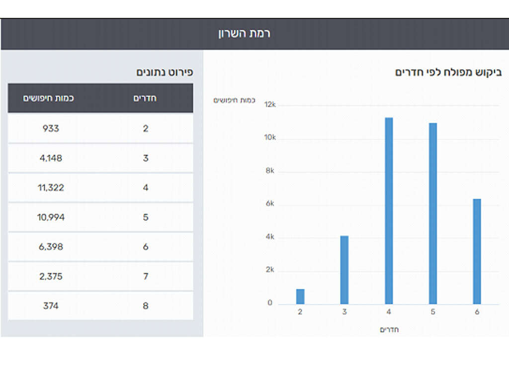 דירות 4 חדרים הן הנכס המבוקש ביותר ברמת השרון עם כ-31% מכלל הביקושים ויותר מ-11,300 חיפושים בשנה האחרונה בלבד.