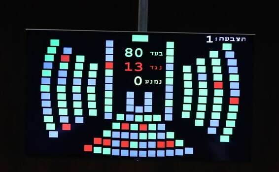 מליאת הכנסת אישרה את הסכם השלום עם איחוד האמירויות. 80 חברי כנסת תמכו באישור ההסכם, מול 13 חברי הרשימה המשותפת שהתנגדו לו.