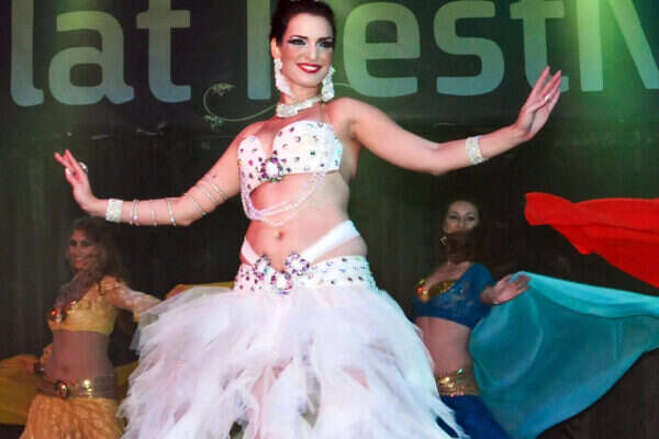 בערב כולן מוזמנות ל"מופע חובק עולם". כל המורות והאורחות מחו"ל עולות על בגדי הופעה ומופיעות כל אחת בתורה. יש רקדניות מאוקראינה, מרוסיה ומסרביה. לכולן שיער ארוך, ונדמה שהעניין הוא חלק מדרישות התפקיד. כולן טורפות את הבמה בחושניות מתפרצת, בלי שום קשר לעובדה שהן מאוקראינה, למשל, תכולות עיניים ובהירות שיער. ואולי עם קשר. רבות מבאי הפסטיבל הן נשים ממוצא רוסי. גם הן נשבו בקסם האוריינטלי, ובשילוב המשמעת הקפדנית והטכניקה המוטבעת להן בגוף מגיל 4 התוצאה מרשימה עד מאוד. בקהל מלחשות הישראליות שהרוסיות מצוינות בטכניקה, אבל שאין שם באמת נשמה.
