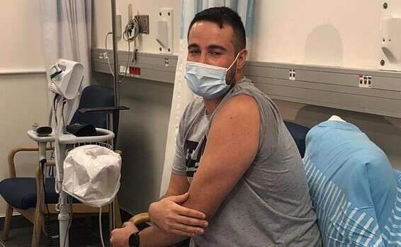 המשתתף הראשון בניסוי הישראלי, שגב הראל, לאחר קבלת החיסון לקורונה