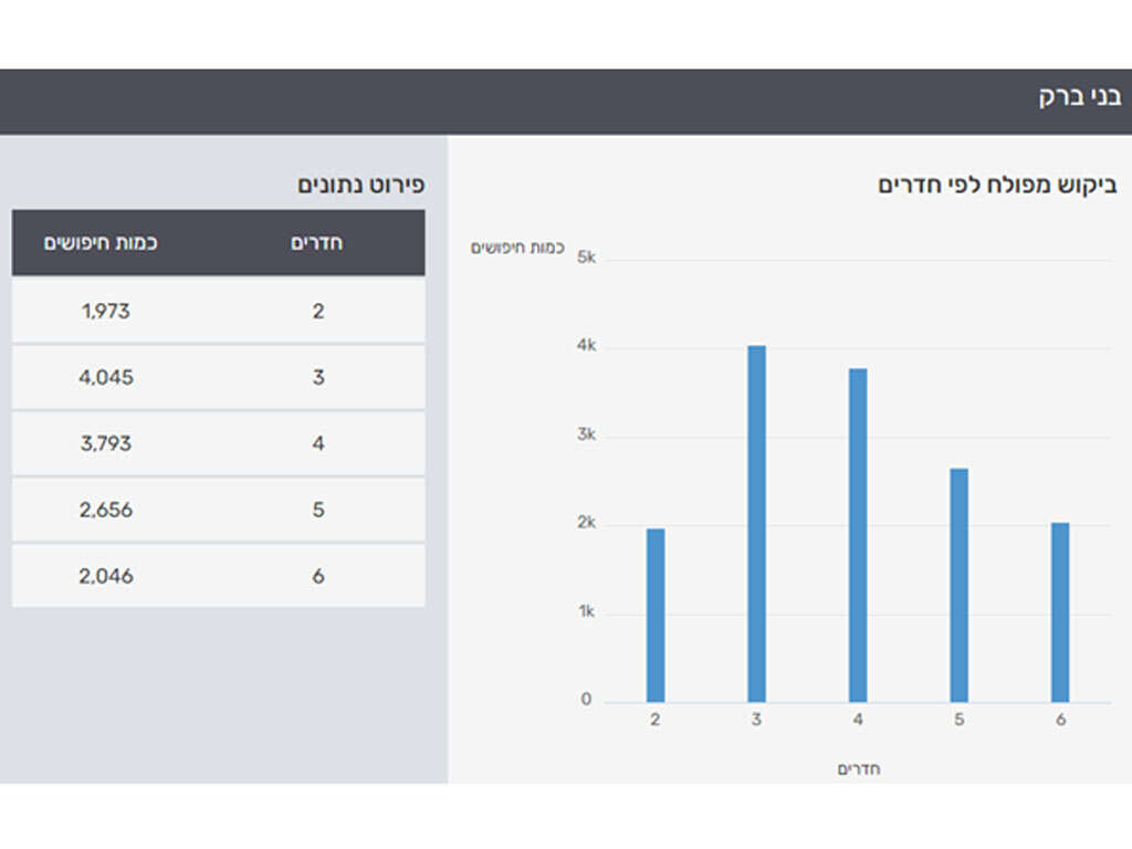 דירות 3 חדרים הן הנכס המבוקש ביותר בבני ברק, עם כ-28% מכלל הביקושים בעיר ויותר מ-4,000 חיפושים בשנה האחרונה.