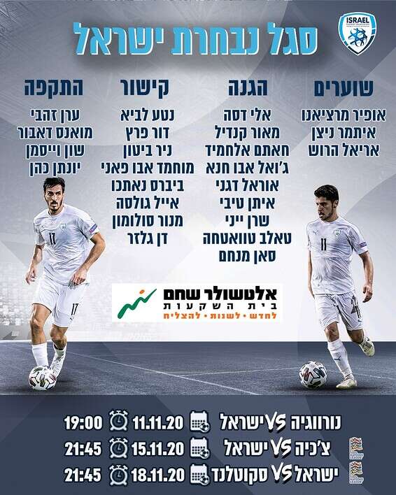 פורסם סגל נבחרת ישראל לקראת חלון הנבחרות הקרוב בשבוע הבא. הנבחרת תפתח את החלון בנורבגיה עם משחק ידידות מול הנבחרת המקומית (רביעי, 19:00). ביום ראשון הבא (15.11) ישראל תצא לצ'כיה למשחק במסגרת ליגת האומות, ושלושה ימים לאחר מכן (18.11) תארח את סקוטלנד באותו מפעל.