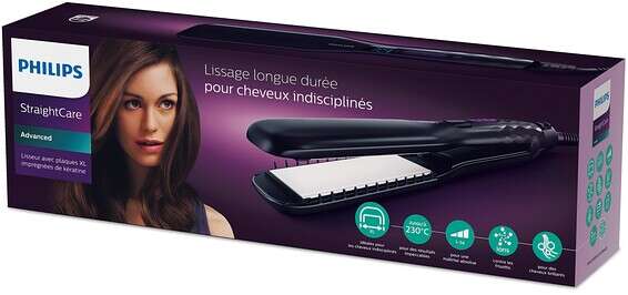 מה: מחליק שיער בטכנולוגיית מיקרו אדים עם דרגות חום שונות עד 200 מעלות צלסיוס. על פי היצרן, טכנולוגיית האדים מאפשרת החלקת שיער עם הגנה על סיב השערה.