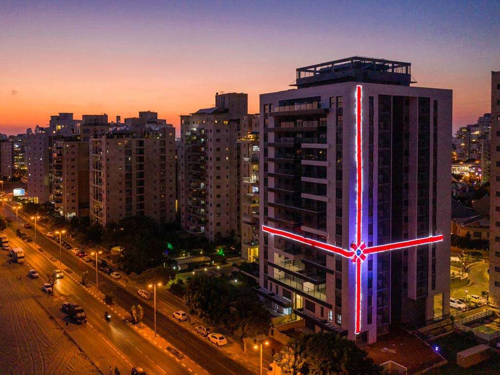 האם חברת אאורה ישראל תשבור שיא גינס עם סרט המתנה הגדול בעולם? החברה השלימה את פרויקט ח-300 בחולון, הכולל בניין בן 13 קומות ובו 50 דירות.
