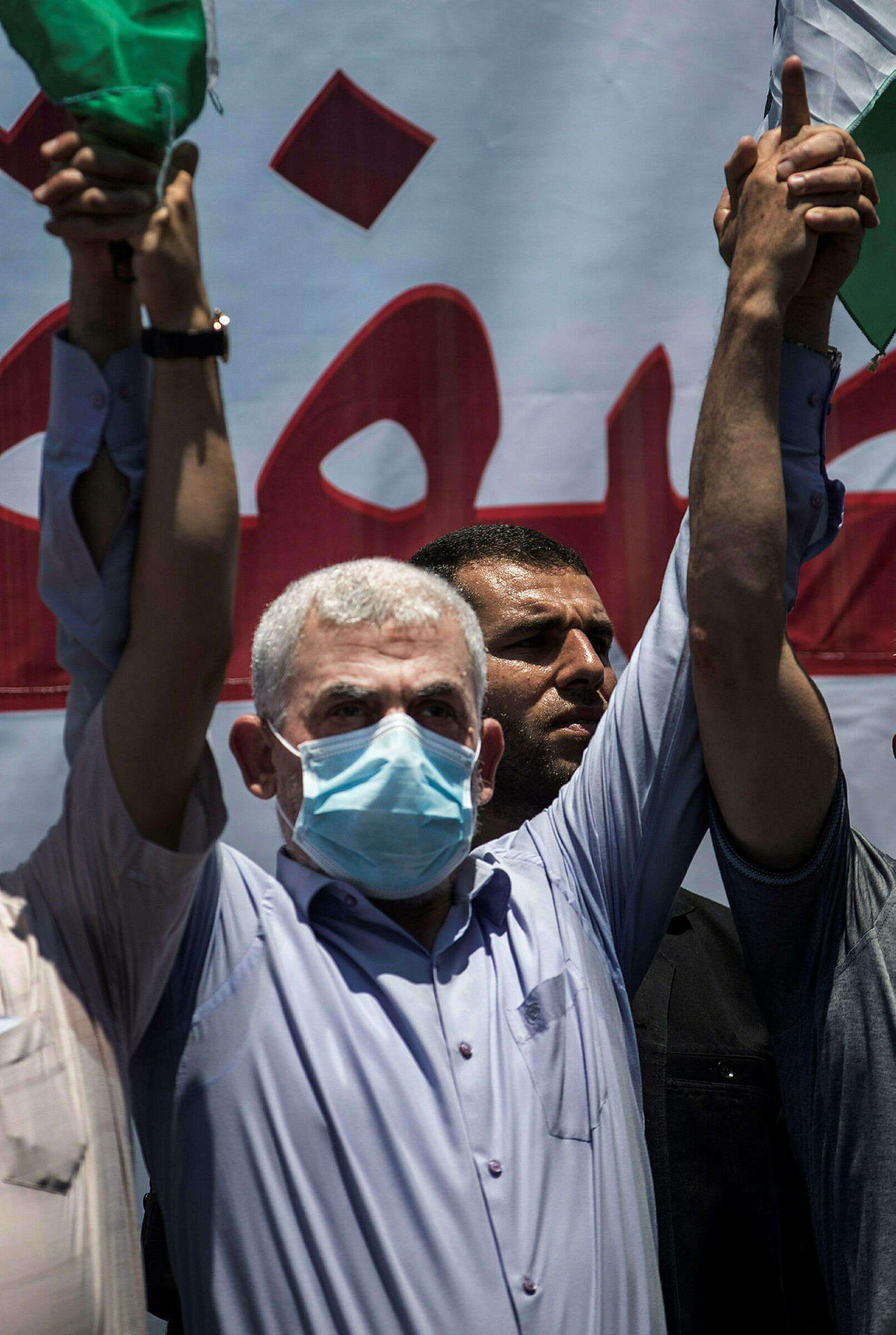 סינוואר בזמן ההפגנות על הגדר ברצועת עזה // צילום ארכיון