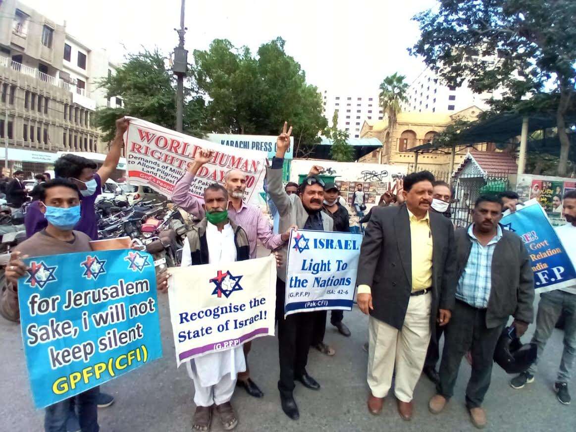 בהפגנה, שנערכה לציון יום זכויות האדם מול לשכת העיתונות של קראצ'י, קראו נוצרים פקיסטנים לאפשר להם לעלות לרגל לירושלים ולהכיר במדינת ישראל, "כפי שמדינות מוסלמיות אחרות כבר עשו". הם הביעו את מורת רוחם על כך שכאזרחי פקיסטן אסור להם לבקר את ישראל. "מאז הקמת פקיסטן, אף אחד לא נתן את הדעת לשאיפתם ארוכת השנים של הנוצרים המקומיים לעלות לרגל לעיר הגדולה", נמסר מאגודת "בני האלוהים של פקיסטן". לדבריהם, "אם ביטלו את החסימה על 'יוטיוב', אין סיבה שלא יבטלו את האיסור לבקר בישראל".