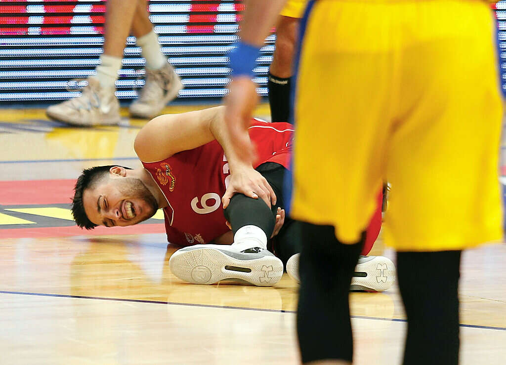 צילום: אלן שיבר // תמיר בלאט תופס את הברך. נפצע בסיום הרבע האחרון